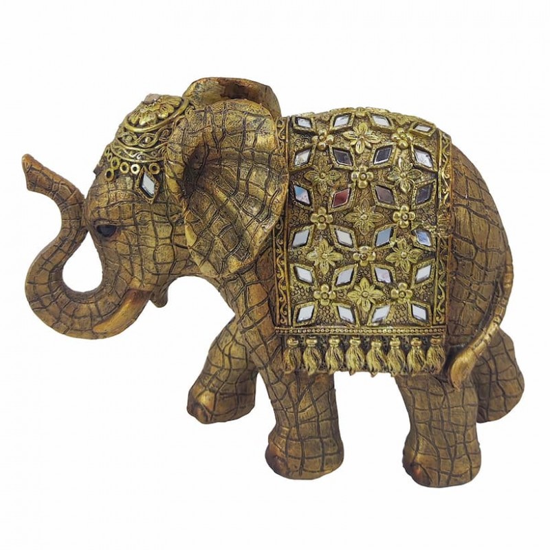 Figura decorativa en forma de un hermoso elefante decorado de forma muy especial con espejitos que aportará un toque encantador a tu decoración con sus toques especiales.