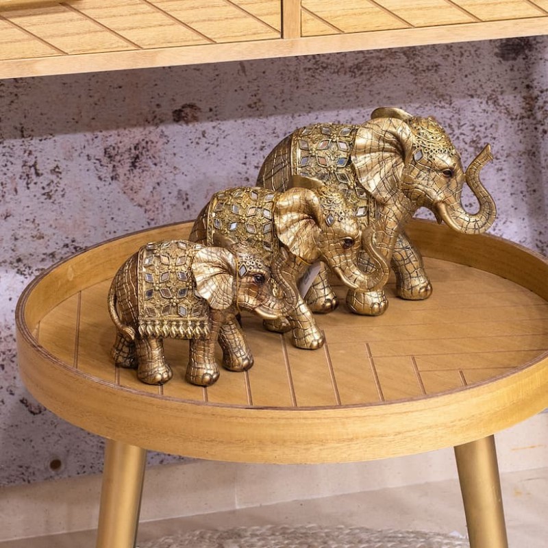 El elefante, conocido en muchas culturas como un símbolo de fuerza, sabiduría y buena fortuna, ocupa un lugar especial en la decoración de interiores. La trompa levantada de este elefante es un signo universal de prosperidad y buena suerte, haciendo de esta figura un elemento decorativo lleno de significado positivo.