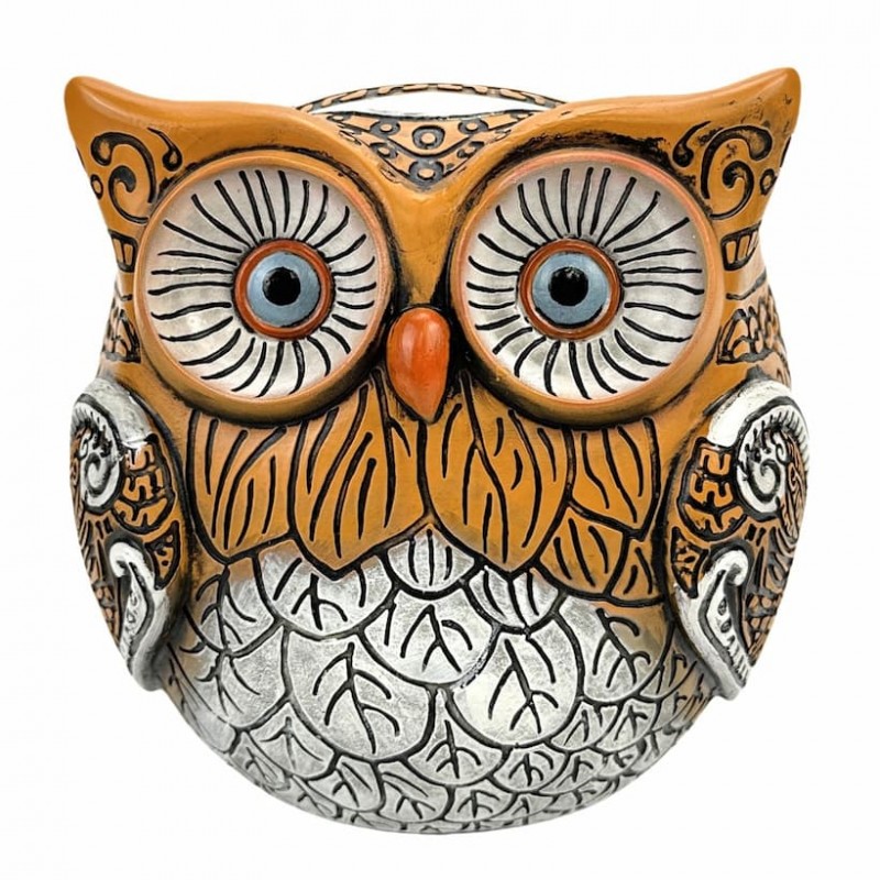 Figura decorativa en forma de un precioso búho con una decoración muy original, ideal para aportar un toque original al resto de tu decoración.