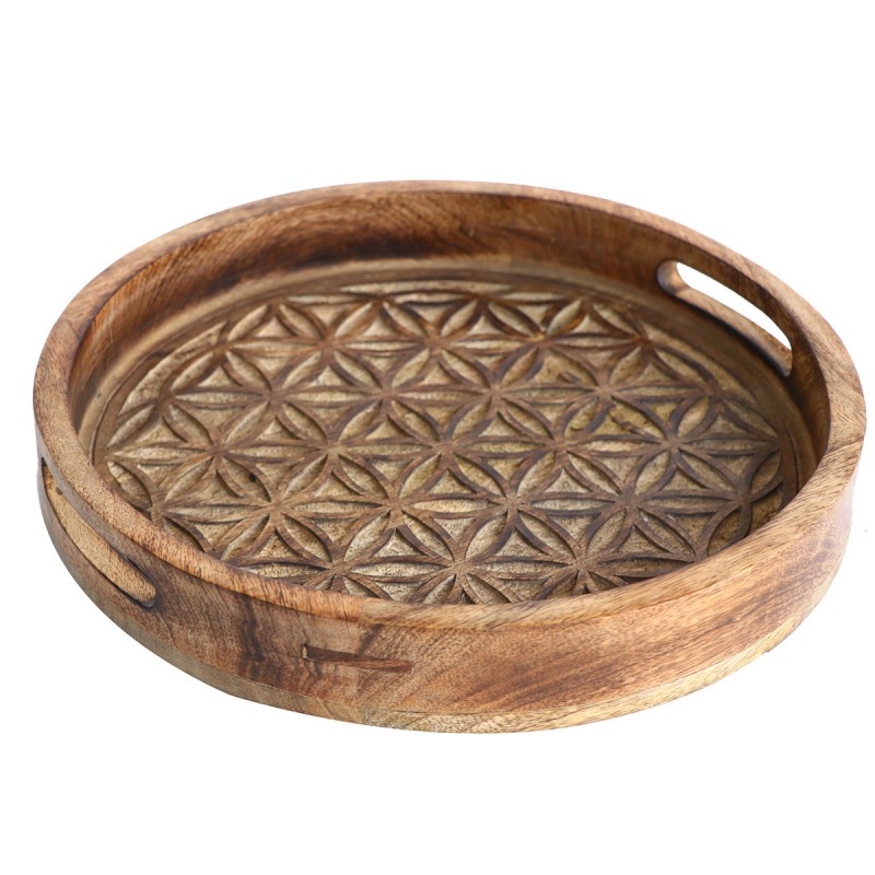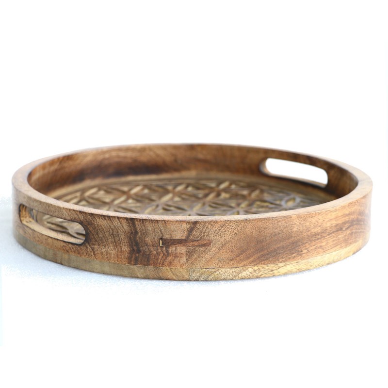 Bandeja muy decorativa con un diseño muy original en forma redonda con dos asas para poder agarrarla con facilidad, que complementarán tu decoración.