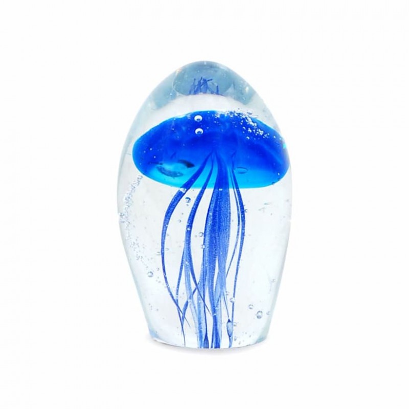 Medusa Mágica en tu Escritorio: Este pisapapeles de vidrio presenta una medusa en su interior. Cada uno está diseñado con precisión para reflejar la belleza de estas criaturas marinas. ¡Trae la magia del océano a tu espacio!