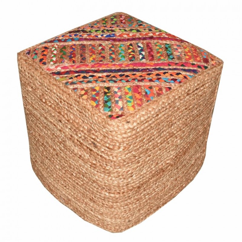 Original puf natural trenzado fabricado en yute, perfecto para complementar tu cuidada decoración del hogar, aportando un toque bohemio a tu decoración.